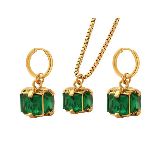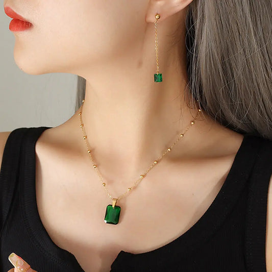 Emerald Zircon Pendant Necklace & Green Zircon Jewelry Set