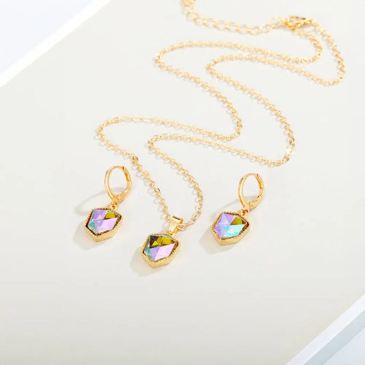 Elite Fashion Resin Crystal Pendant Necklace and Earring Set for Women