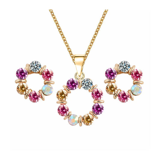 European Style Crystal Jewelry Set – Colorful Pendant & Earrings