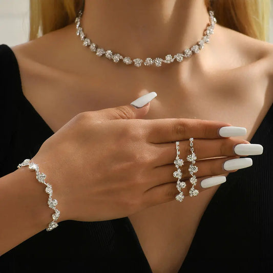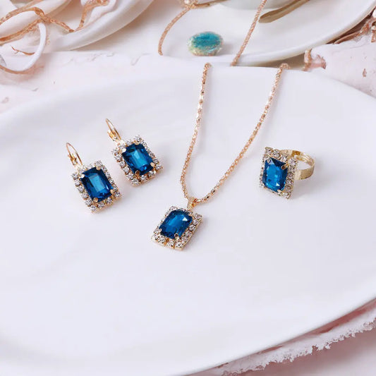 Sparkling Zircon Jewelry Set – Complete Style with Necklace, Ring, and Earrings
