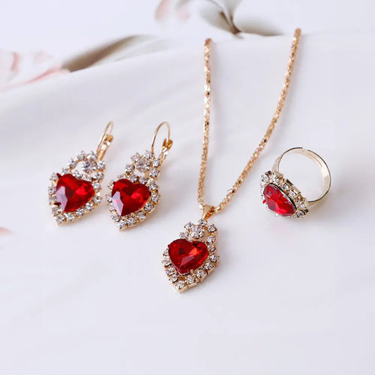 Radiant Garnet Jewelry Set - Necklace, Earrings, and Ring for Special Occasions