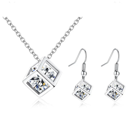 Zircon Jewelry – Geometric Pendant and Earring Set for Modern Elegance