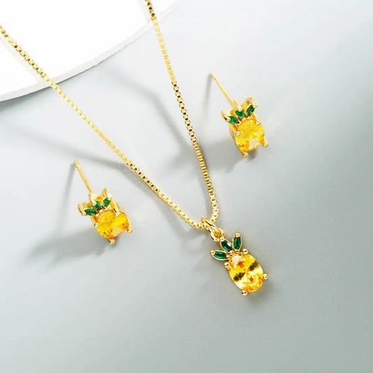 Tropical Fruit Zircon Jewelry Set – Strawberry and Pineapple Design