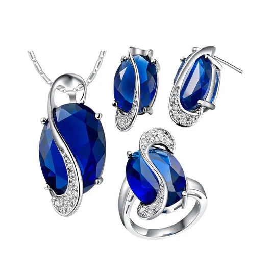 Glamorous Sapphire Jewelry Set with Zirconia Accents